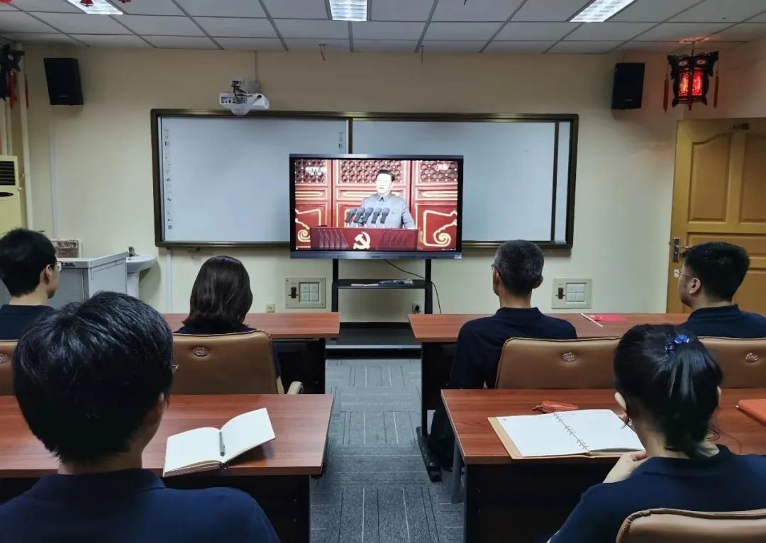 国际教育机构党委全体党员在7-1224观看直播。