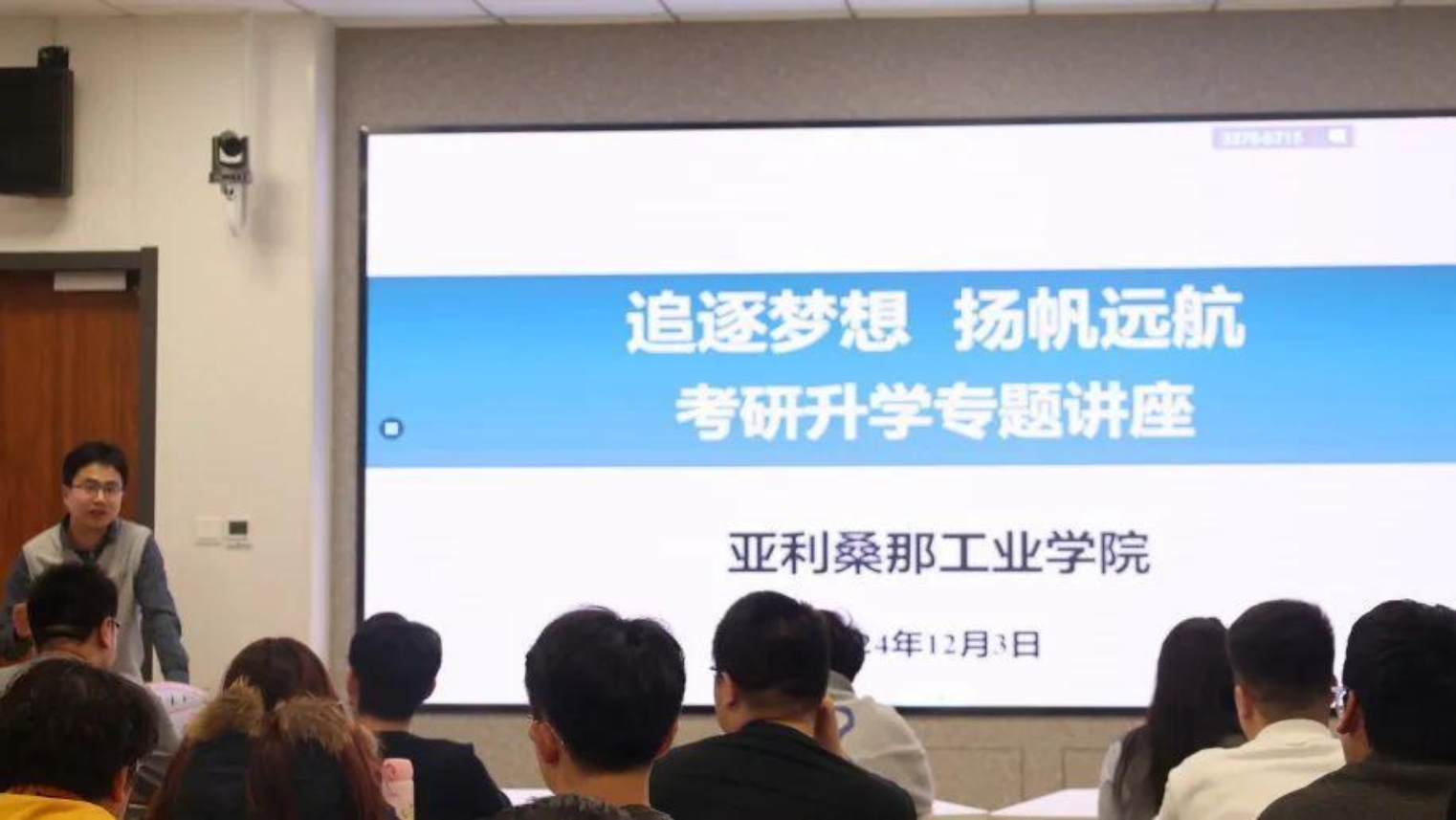 为助力亚工麻豆网 学生做好学业规划与就业准备,提升专业认知,明确学习目标,深入了解考研形势,12 月 3 日,麻豆网 院长卿龙邦教授开展了一场以“追逐梦想 扬帆起航”为主题的考研升学专题讲座。50 余名亚工学子积极参与,讲座由辅导员王彦凯主持。