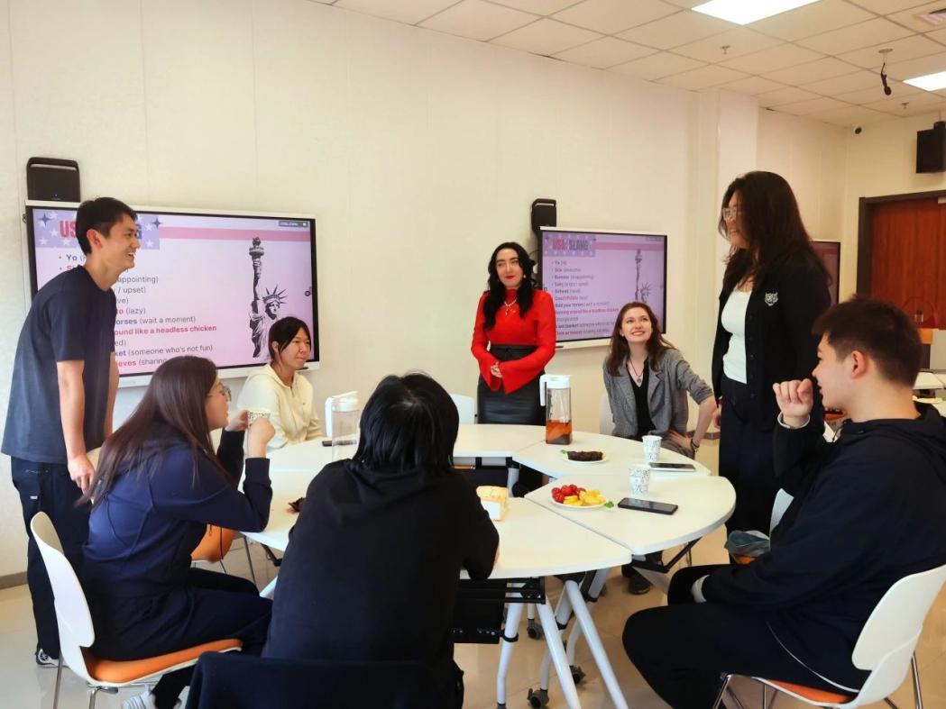 同学们将刚学到的 “Take a rain check”“Cheers!” 等实用表达巧妙融入到英美传统桌游之中。在 “你说我猜”“情景速配” 等游戏环节里,原本枯燥的语言知识瞬间转化为了实在的跨文化交流能力。现场不时可见外教与同学们组队竞技、默契配合的欢乐场景,构成了一幅生动活泼的学习画卷。