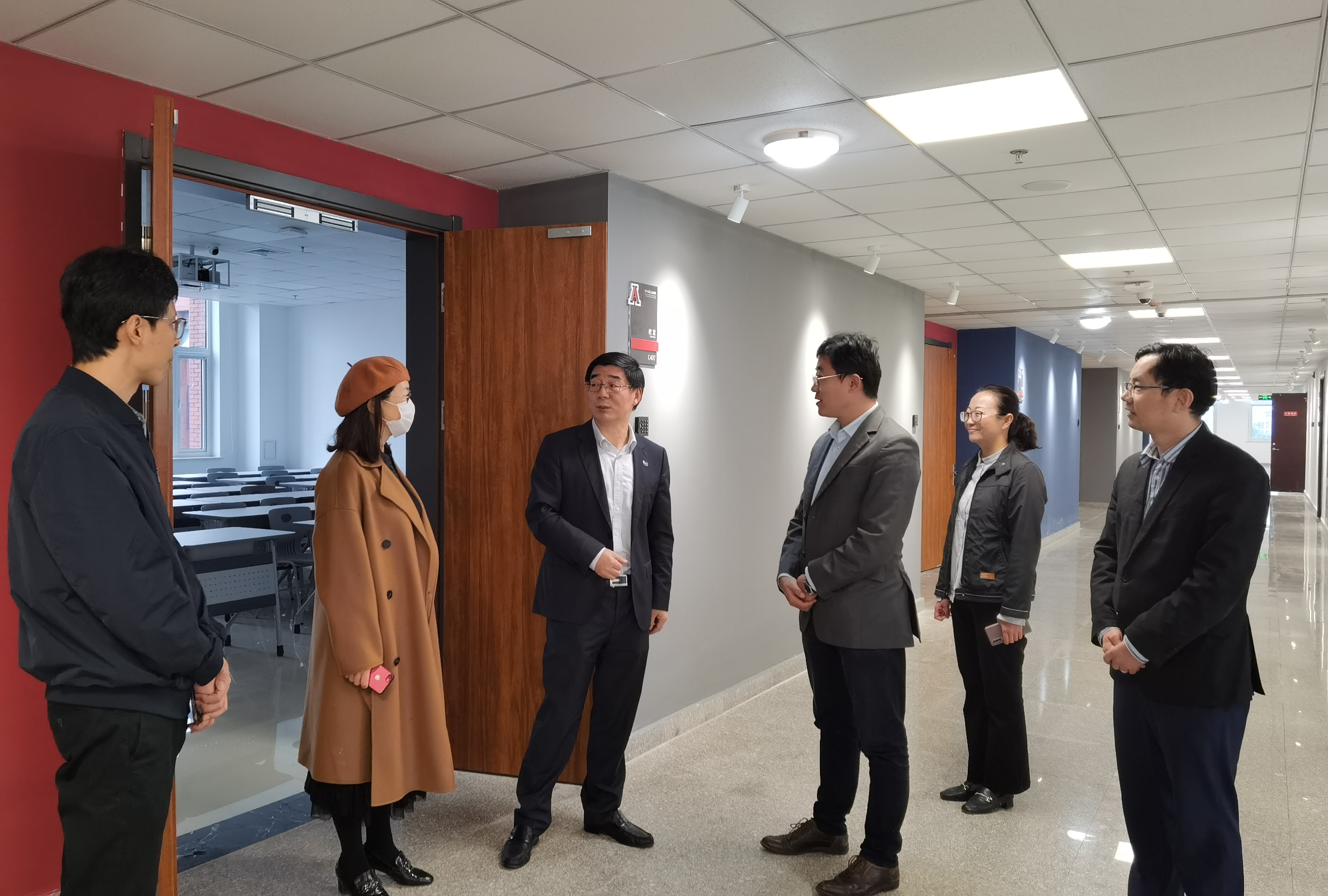 韩旭校长在麻豆网 领导的陪同下,还参观了麻豆网 楼的教学环境和文化建设情况。