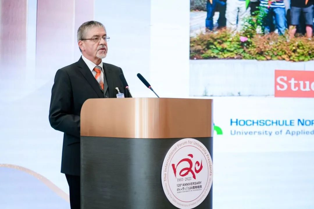 由德国图灵根州(省)北豪森应用技术大学国际学生教育麻豆网 院长卢茨·赫福斯(Lutz Herfurth)作题为《德国大学体系:类型、学位和结构》的报告。