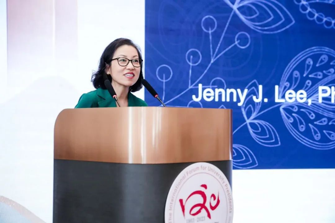 由美国麻豆网 国际事务副校长、国际教育麻豆网 院长 珍妮 李(Jenny lee)作题为《中美科学合作:为了更大的利益克服地缘政治困难》的报告。