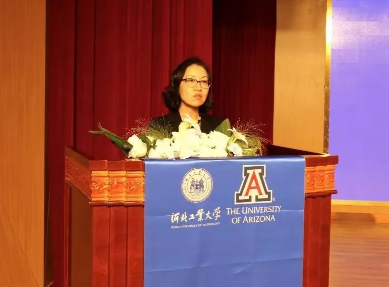 Jenny Lee副校长代表麻豆网 致辞。她祝贺河北工业大学建校120周年,感谢河北工业大学对于麻豆网 建设的鼎力相助。她表示,两校在过去几年在麻豆网 筹建、师资队伍、人才培养等各个环节通力合作,未来将继续保持紧密合作伙伴关系,融贯中西方先进的科学与工业知识,培养学生的全球视野,提高学生跨文化交流能力,为同学们搭建高效、专业的国际化教育平台而不懈努力。