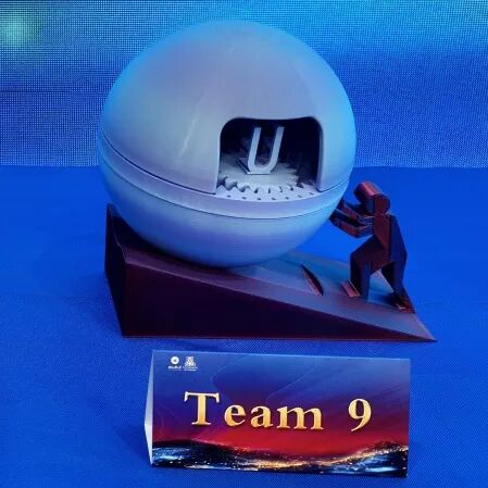 作品以3D打印一体化机械结构为核心,灵感源自加缪笔下西西弗斯“持续推动”隐喻,通过“发力小人与斜坡”具象“重复探索非徒劳”的成长本质。空心球体内置可转动齿轮组,借预留窗口实现机械运动向字母动态变化的信息转化;创作中突破增材制造技术,实现封闭腔体、可动机构与外观表达单次成型。作品价值不止于实体留存,更在于创作中积淀的实践能力与创新思维,探索坚守中的成长为核心价值。