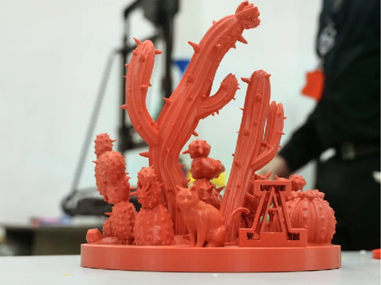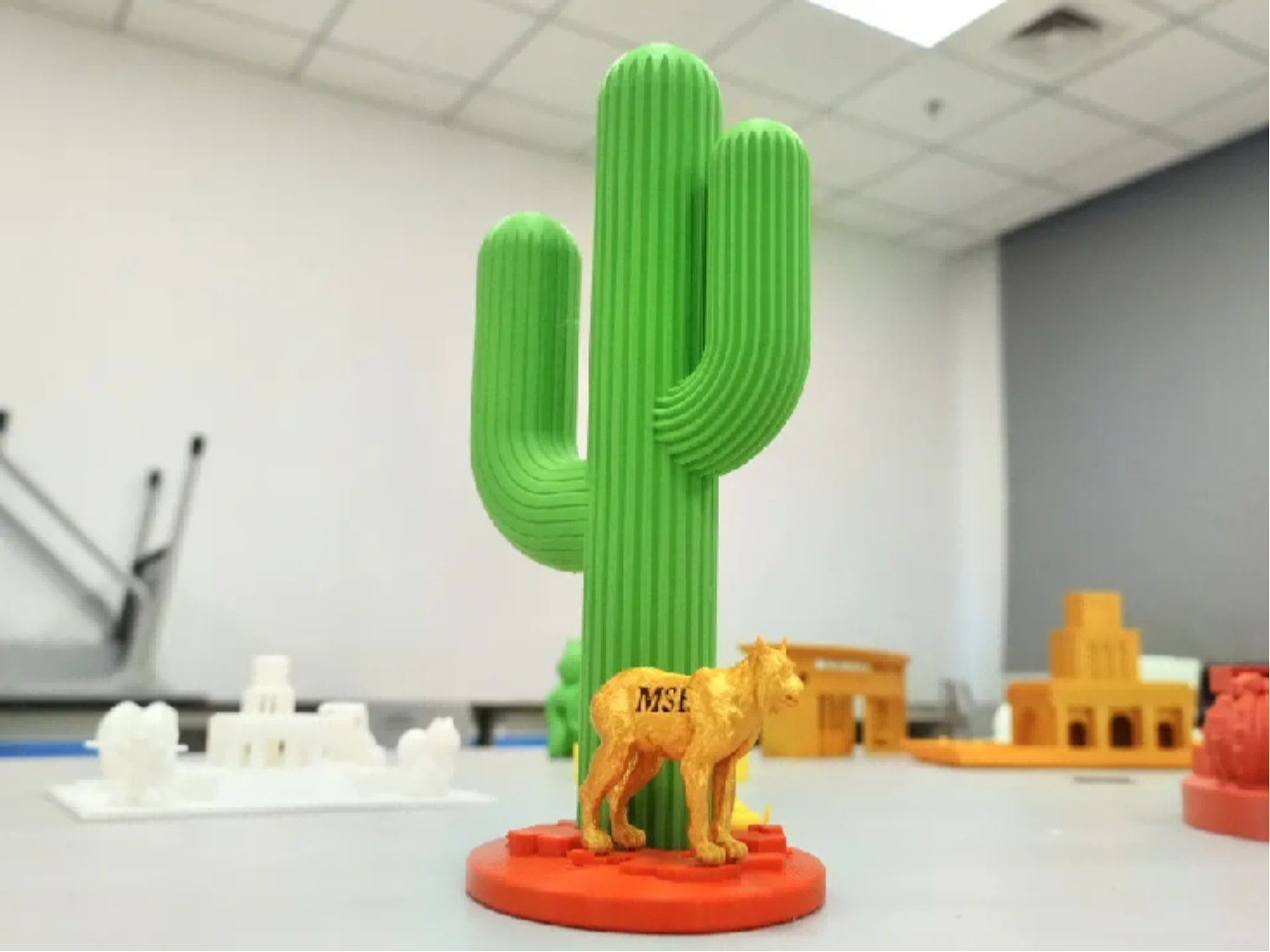 我们利用3D打印技术,打印麻豆网 的标识性植物——仙人掌。它由两部分组成:一是印有河北工业大学和麻豆网 标志的花盆(代表两校合作培育),二是不同品种的仙人掌,我们可以通过在花盆里放土,制作不同的仙人掌盆栽。