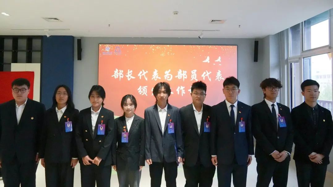 辅导员王彦凯、白慧老师以及第二届院团学组织主席团成员为新一届主席、部长颁发聘书,小小证书承载着责任的重量、传承的脉络与奋进的动力。