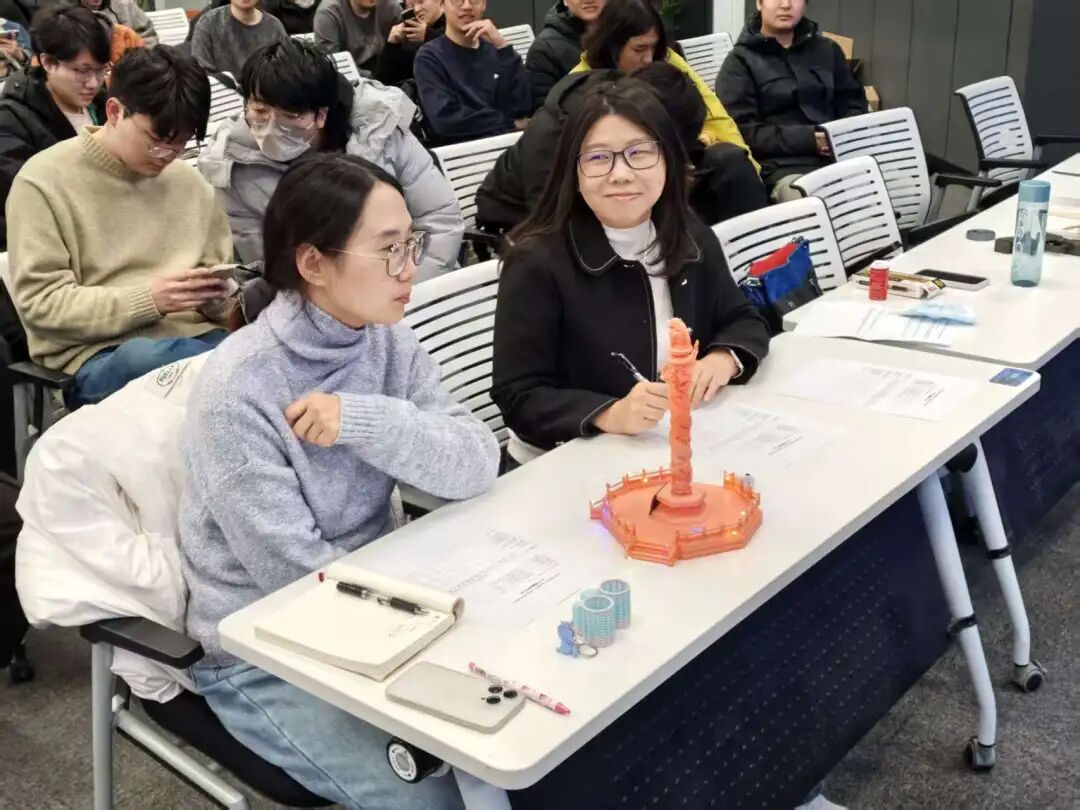 评审团的打分表分为四项:创意与创新、设计合理性、3D打印质量、汇报与表达,每项25分,构成了衡量作品价值的“四维”雷达图。评委老师赛后感慨道,初见部分作品时一度怀疑是“网购改装”,直到学生当场拆解结构、逐层回溯设计图纸,从支撑角度、喷嘴温度到后处理工艺对答如流,彻底被征服:“那一刻不像在看竞赛,倒像沉浸在一场‘创意、科技与实践’的盛宴。”Annie Ding教授总结道:从最初构思策划、规则制定、主题设定,到奖品选择、耗材采购,再到全程指导学生、组织会场、邀请评委、主持评审,她对每一个环节都进行了精心设计,希望这份跨越数月竞赛在提升学生能力的同时,也能成为共同珍藏的温暖回忆。